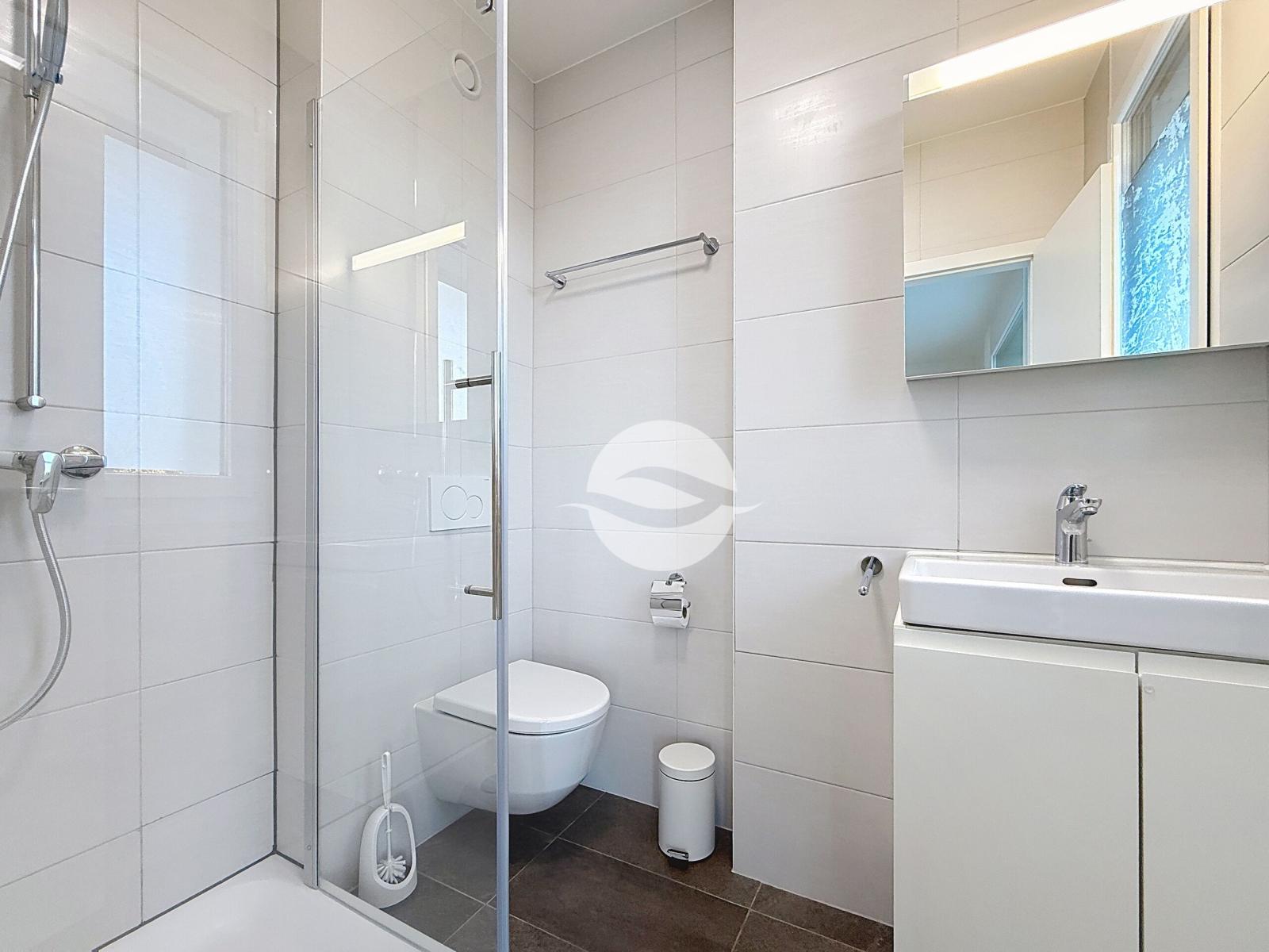 - Salle de bains avec douche et coin buanderie équipée