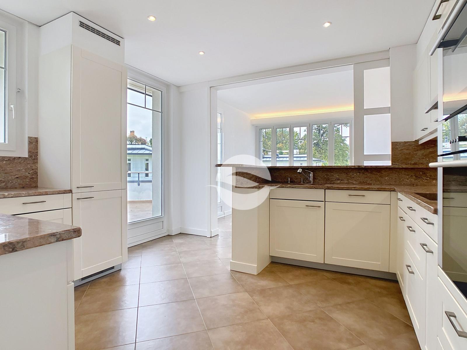 Situé au milieu d'un écrin de verdure, dans un quartier privilégié, ce magnifique appartement localisé au 1er étage possède tout le confort moderne : finitions soignées, équipements de très haute qualité tels que des électroménagers V-ZUG, une douche/hammam.