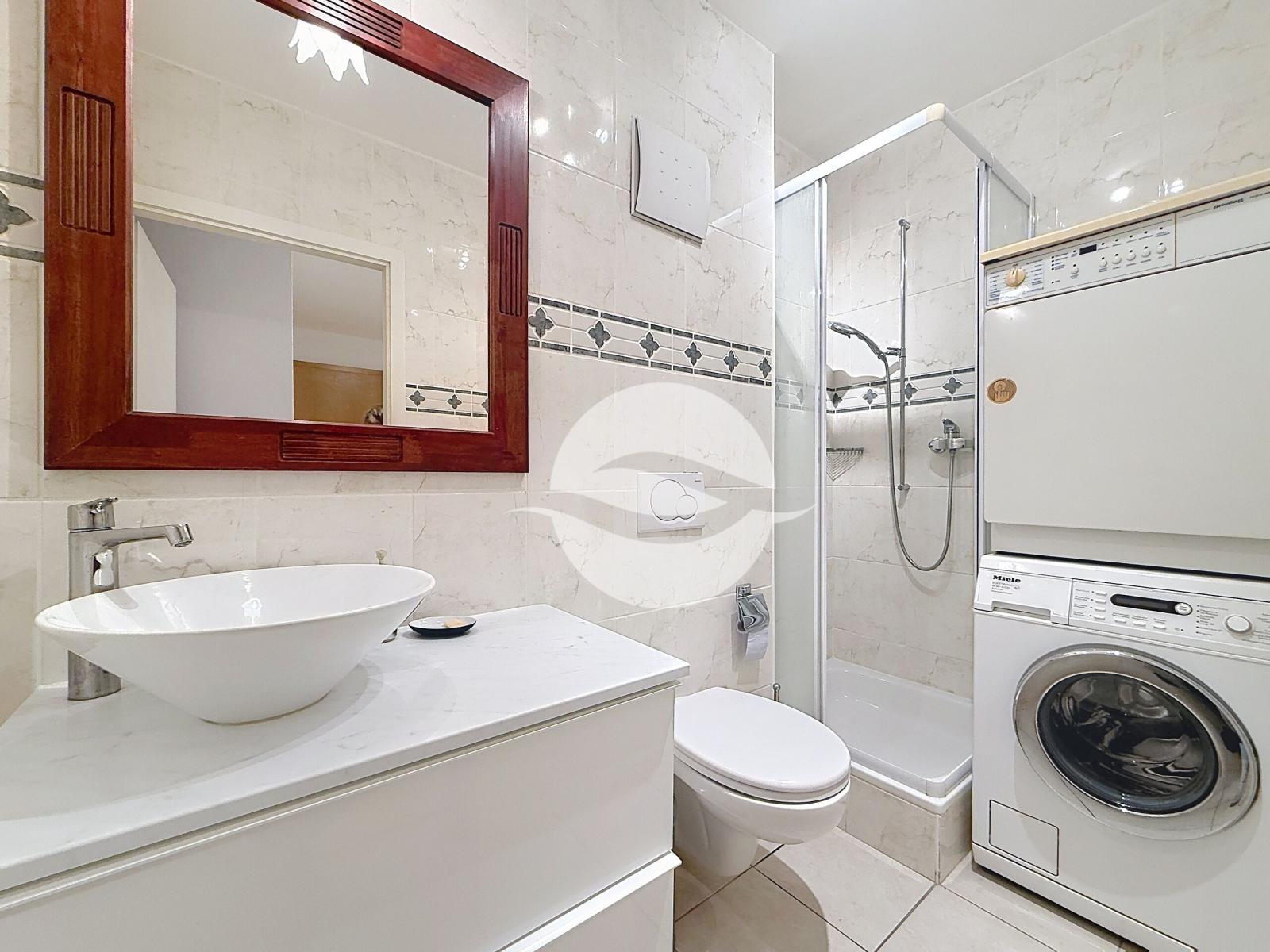 Salle de douche avec colonne lave-linge et séchoir